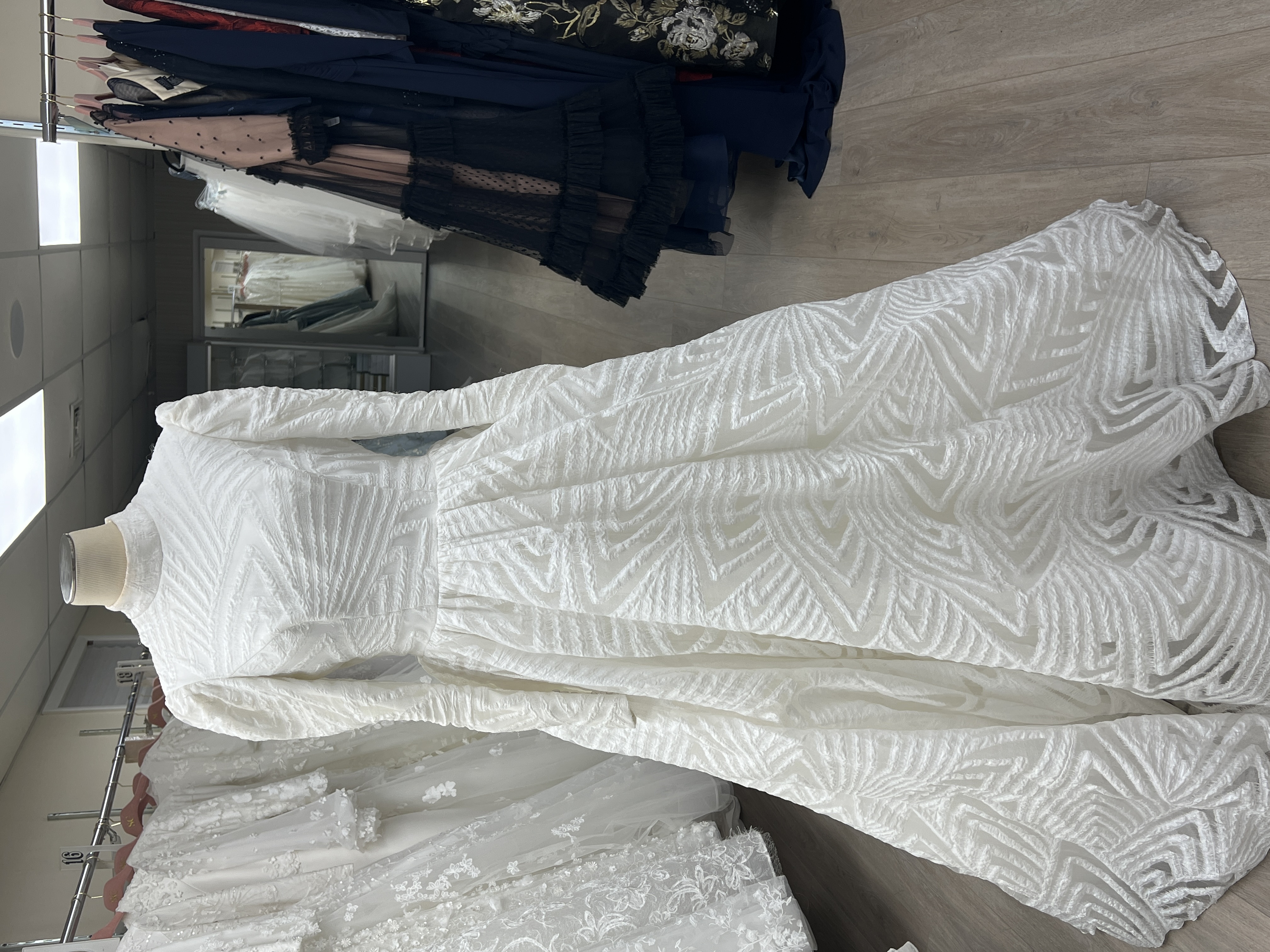 Puffy with puff sleeve zig zag embroidered fabric on organza
