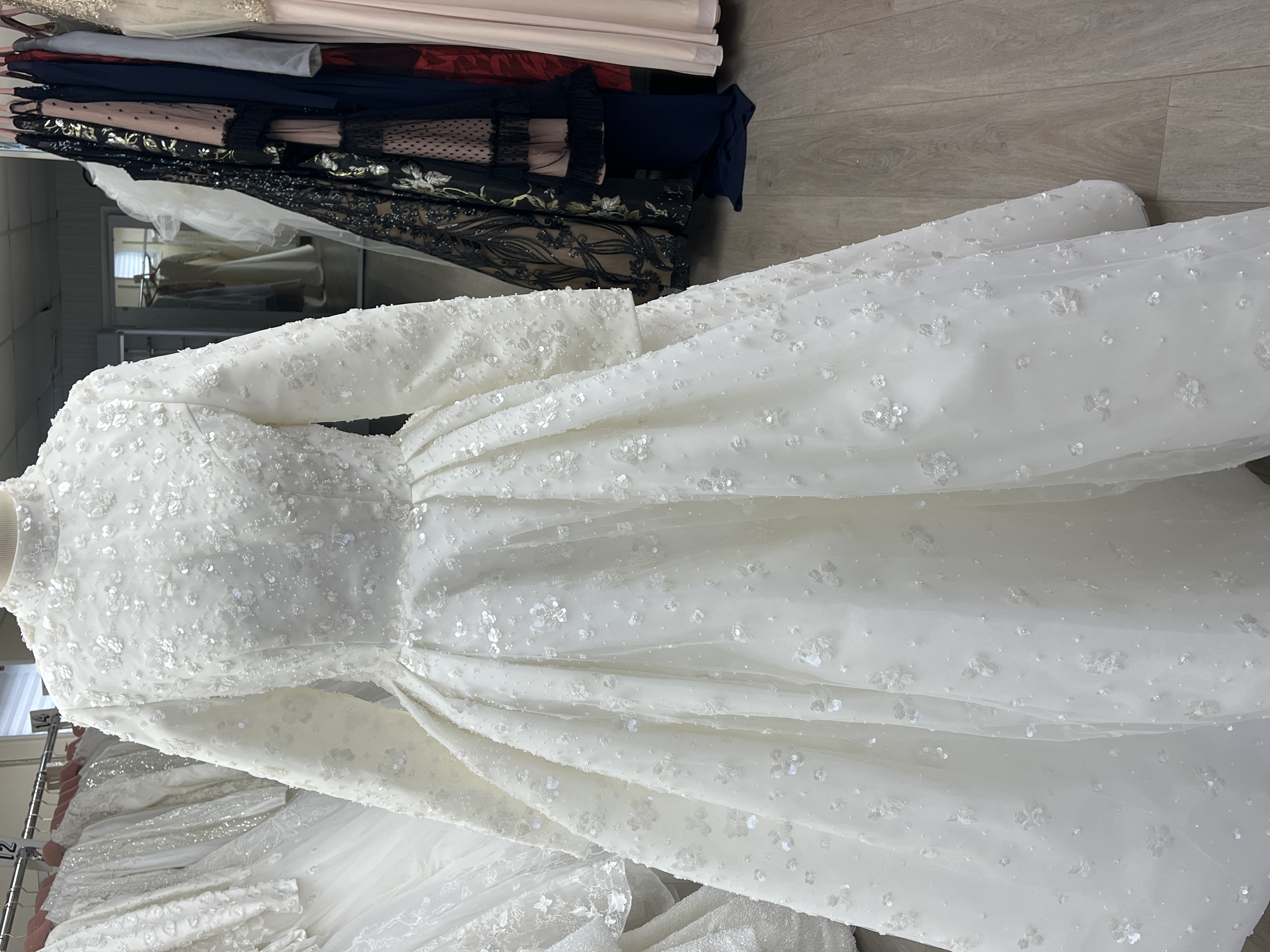 Full skirt with pearl sequin all over in a floral design