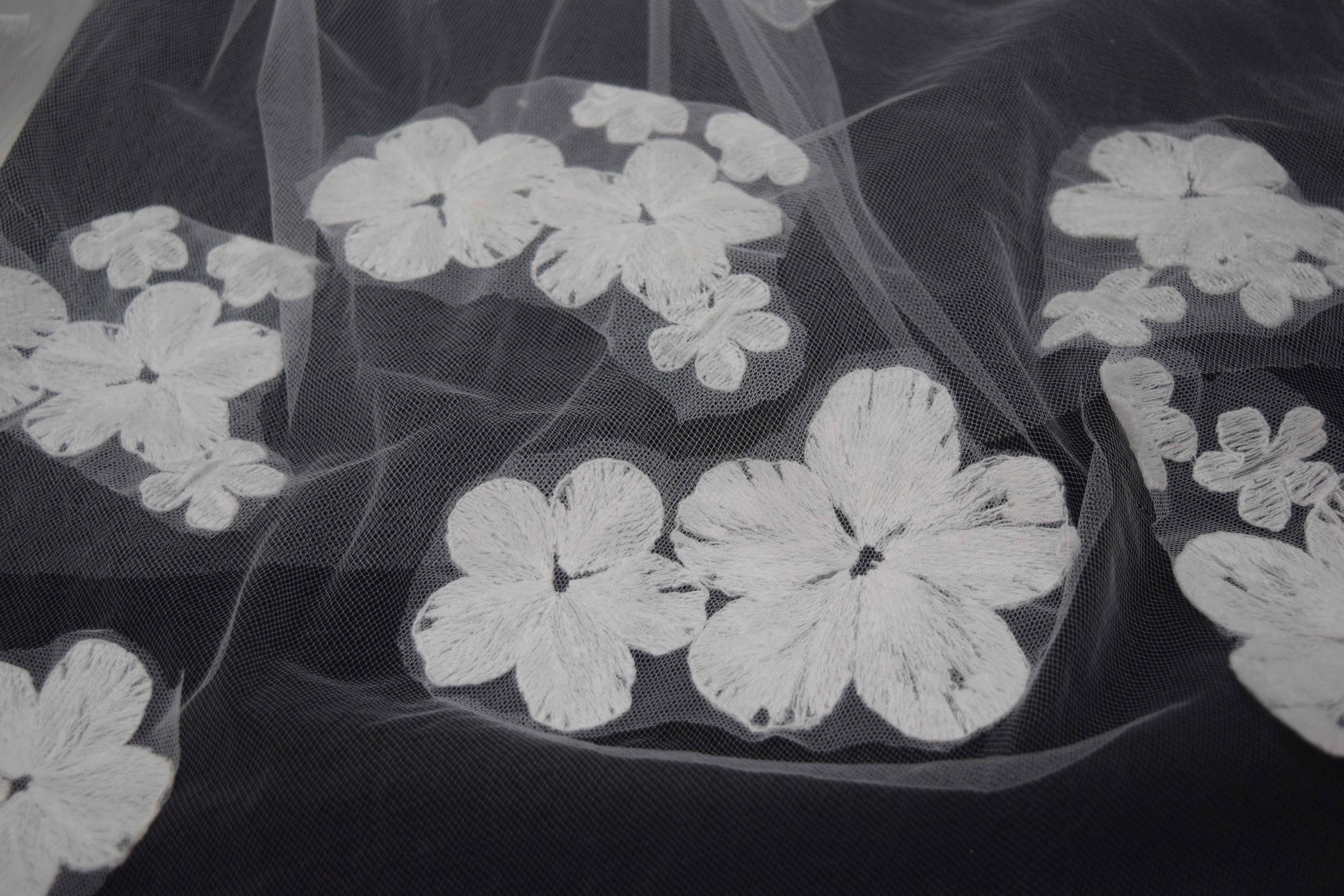 Daisy floral appliques scattered at the bottom