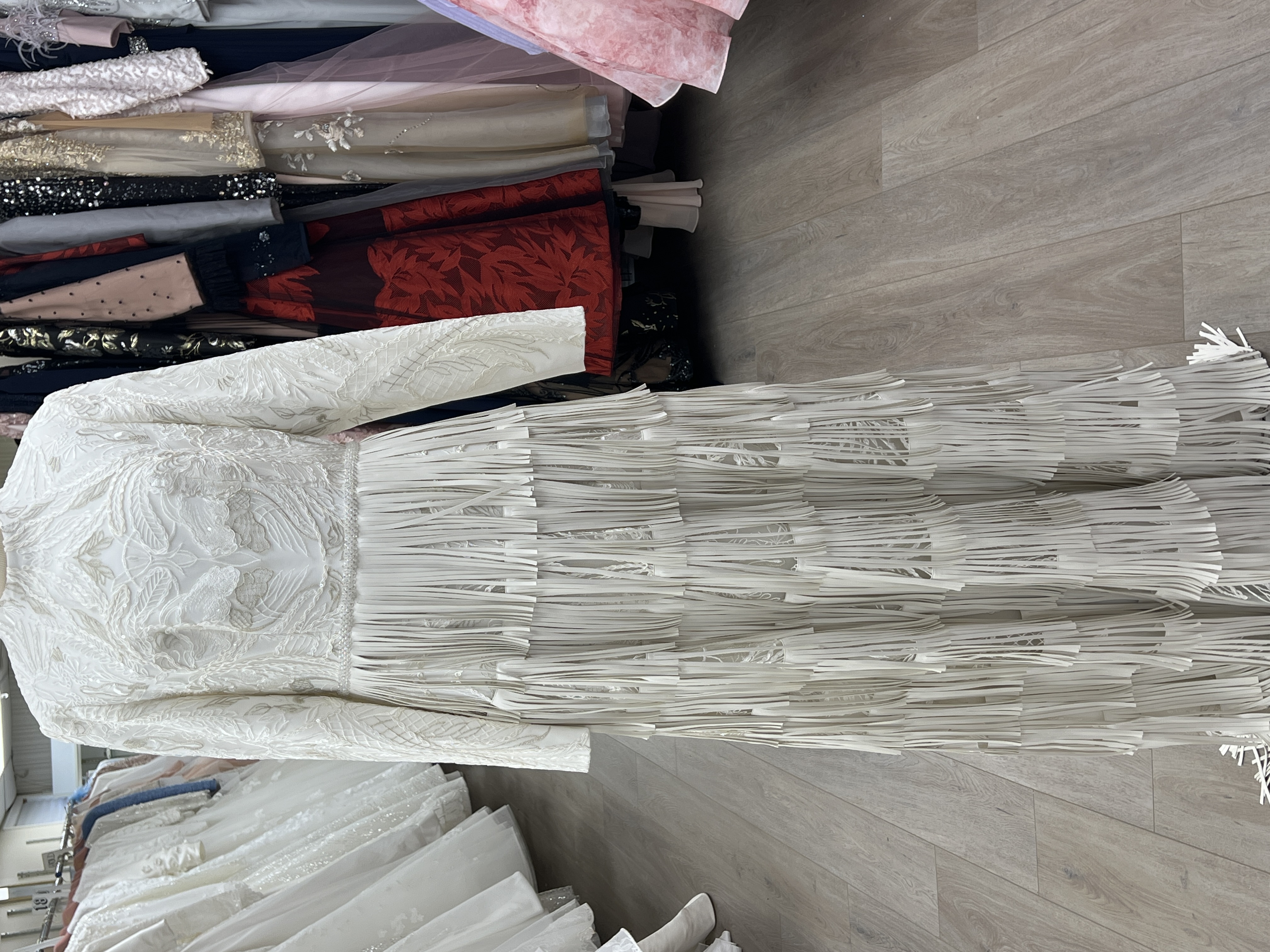 Off white lace straight with leather layers of fringes