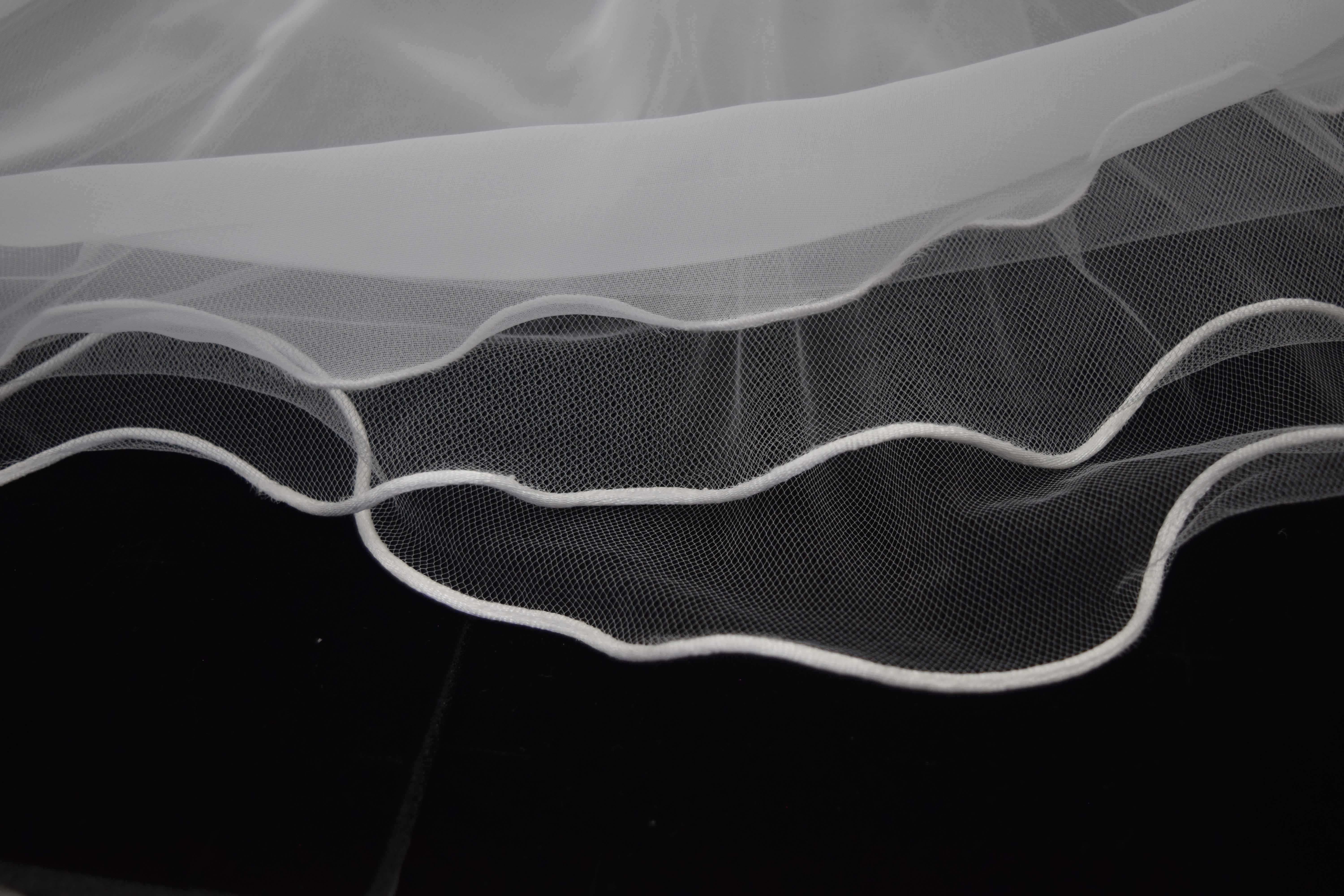 White double layer tulle with curly ribbon edge and bedekin attached