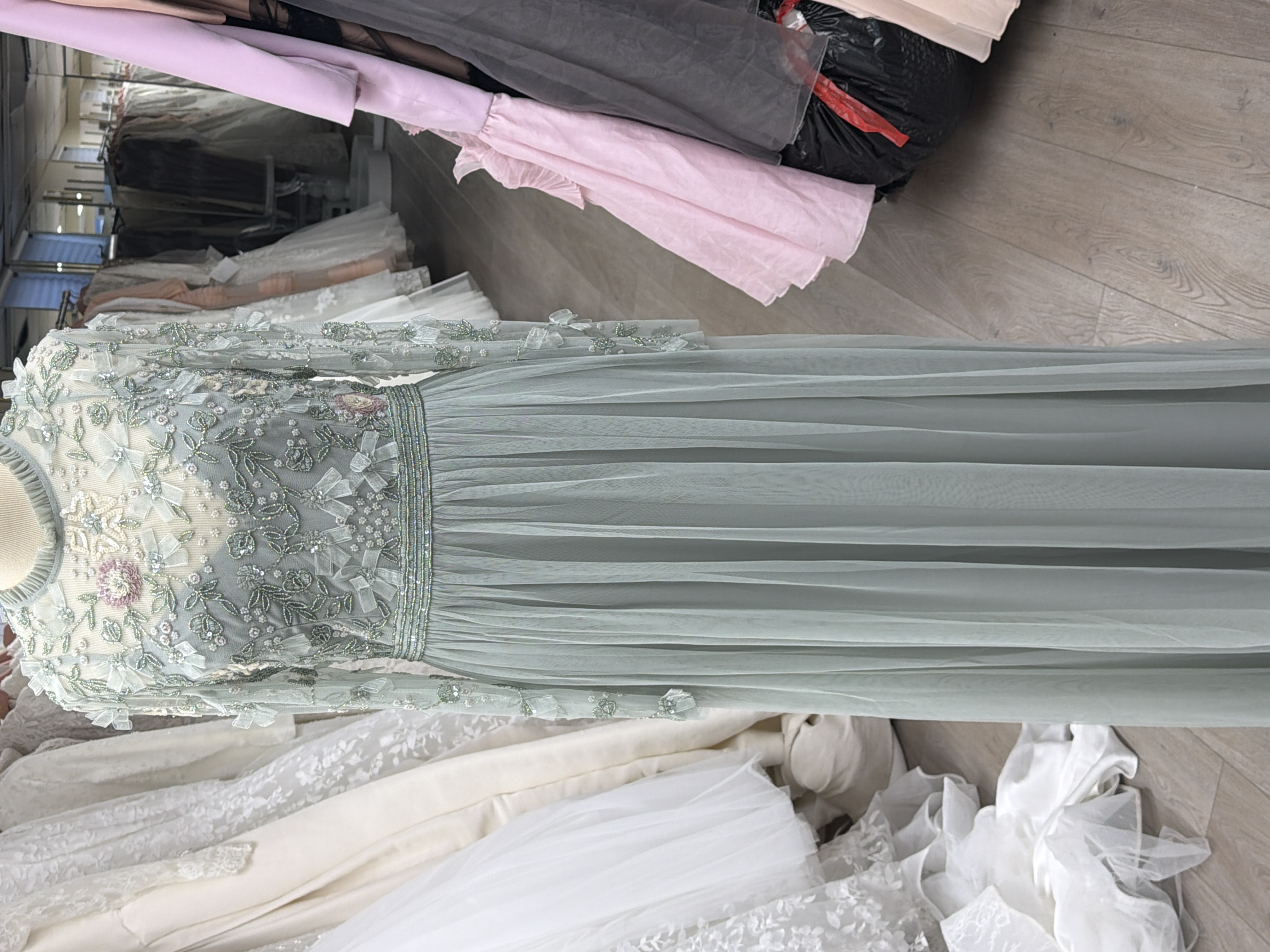 Mint green tulle skirt with beaded sequin top