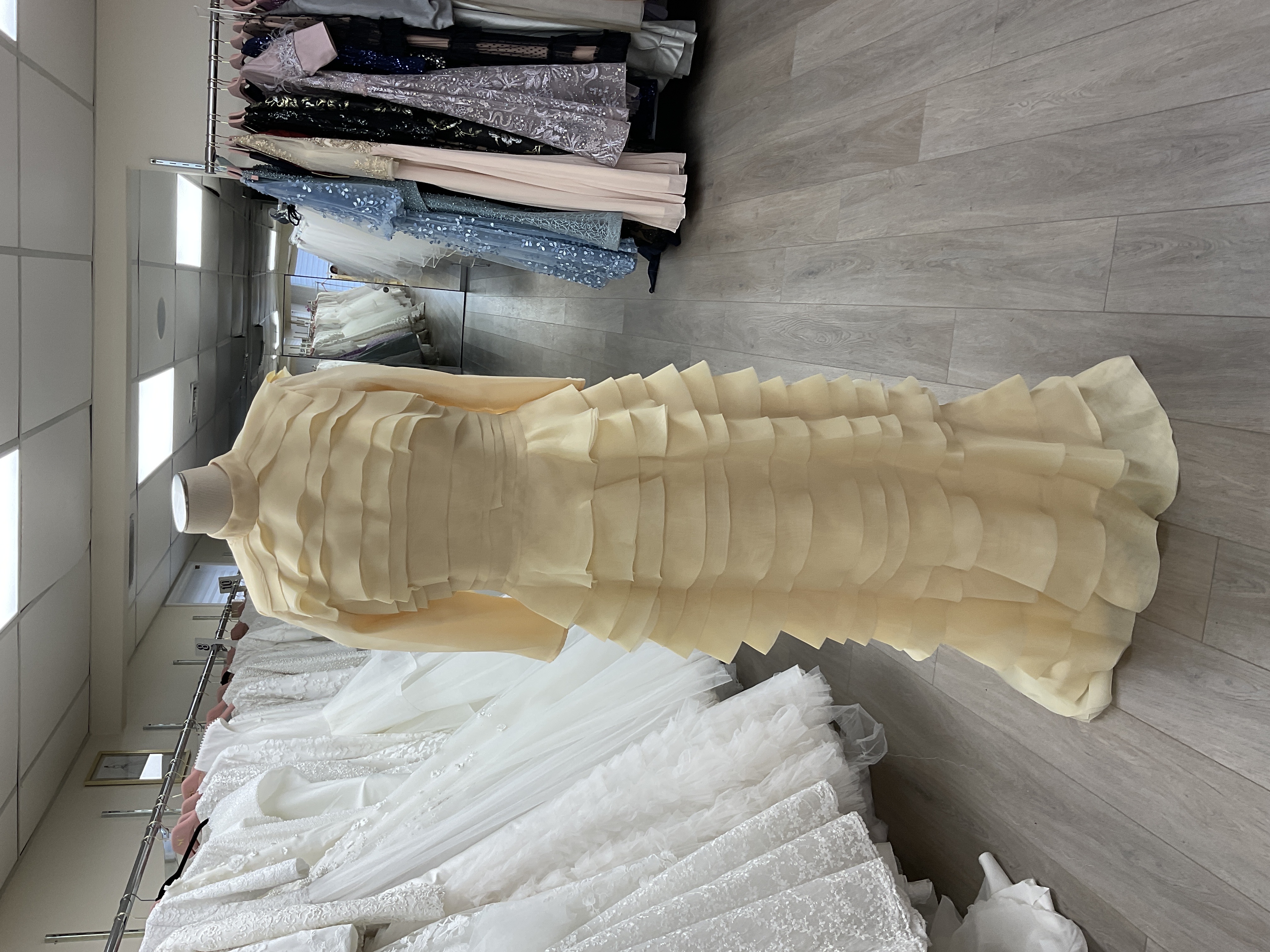 A-line chiffon all layered gown